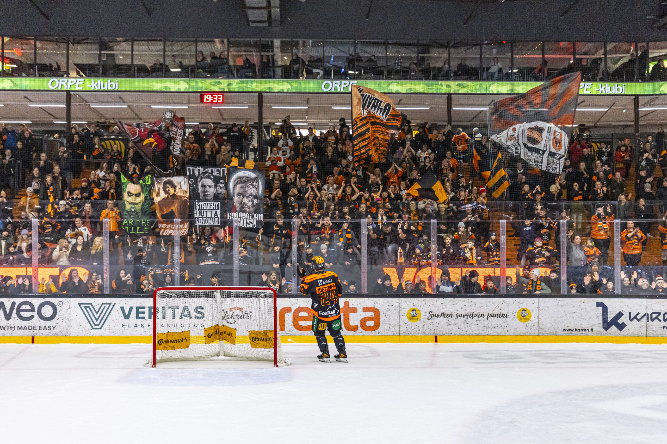 Oranssimustat menivät 3–1 -johtoon, kun Miettinen viimeisteli illan toisen osumansa terävällä rannelaukauksella ajassa 46.36. Syöttöpisteet nappasivat Santeri Sulku ja Loponen.