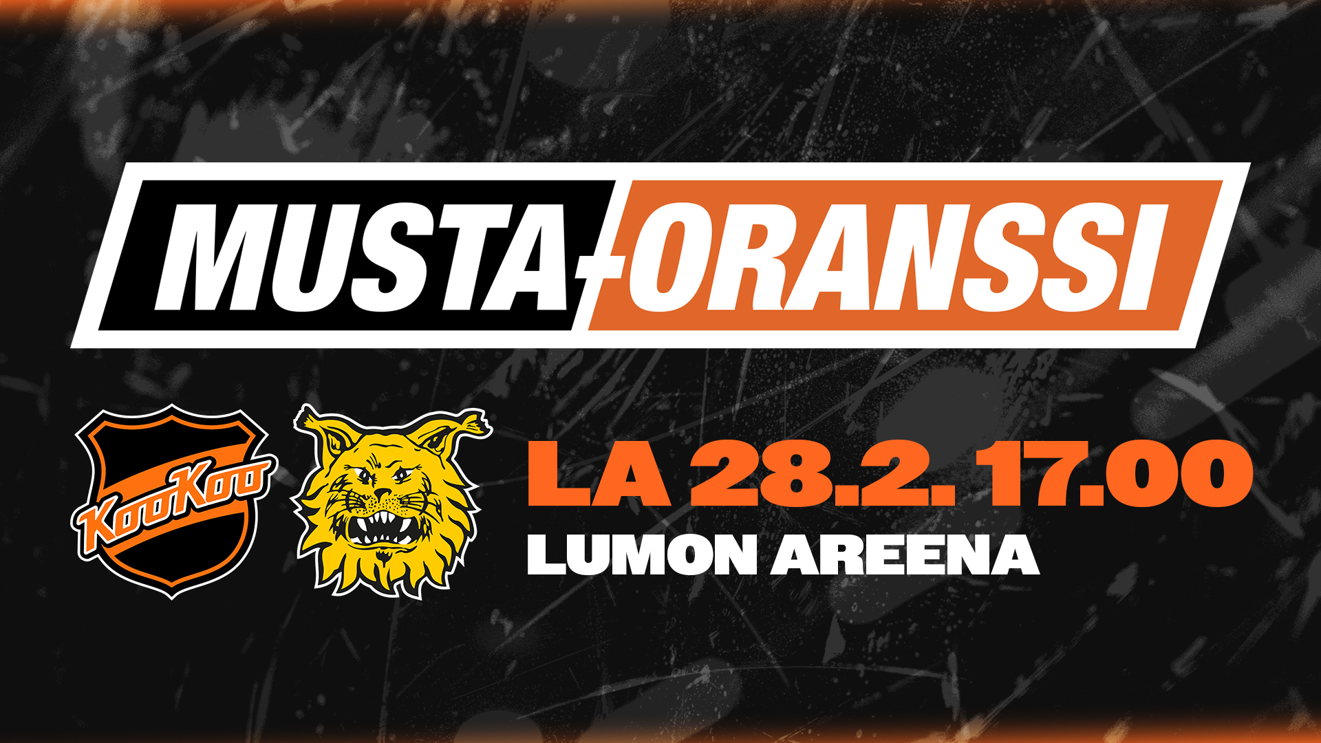 Tulevana lauantaina 28.2. vietetään Mustaoranssia päivää Lumon Areenalla. Päivä huipentuu Mustaoranssiin Liigan ilmaisotteluun KooKoo–Ilves klo 17.00.
