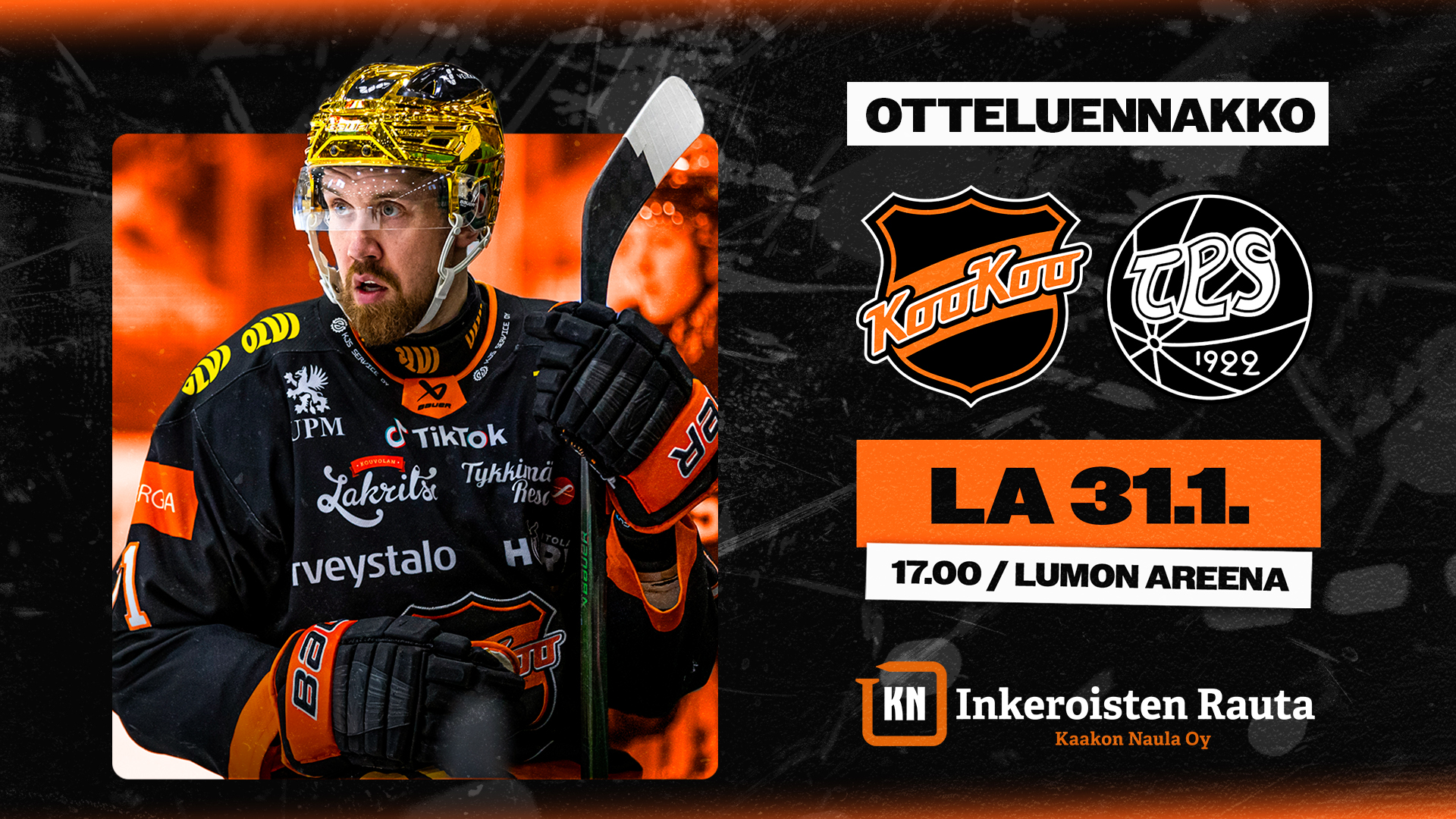 La 31.1. KooKoo–TPS klo 17.00, Lumon Areena, Kouvola // OSTA LIPUT TÄSTÄ!
