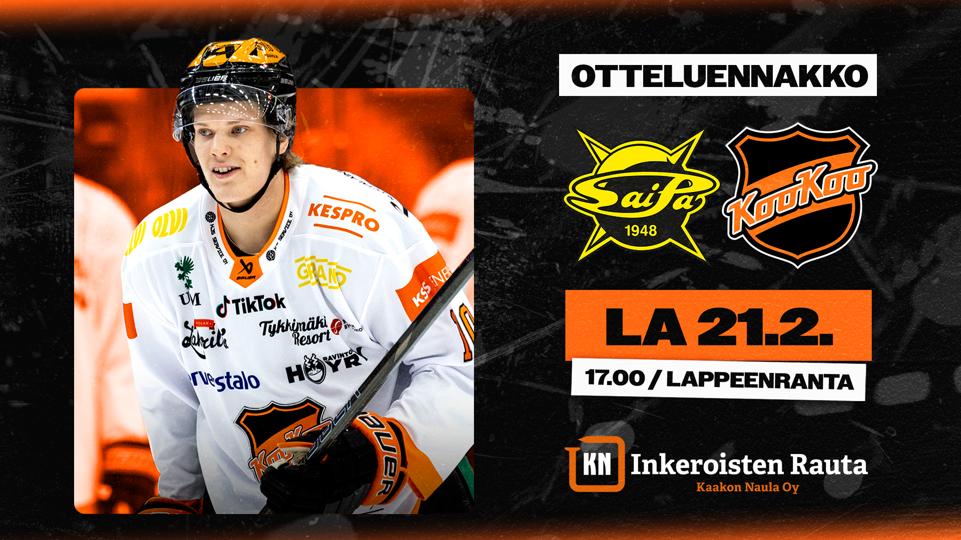 La 21.2. SaiPa–KooKoo klo 17.00 Kisapuiston jäähalli, Lappeenranta