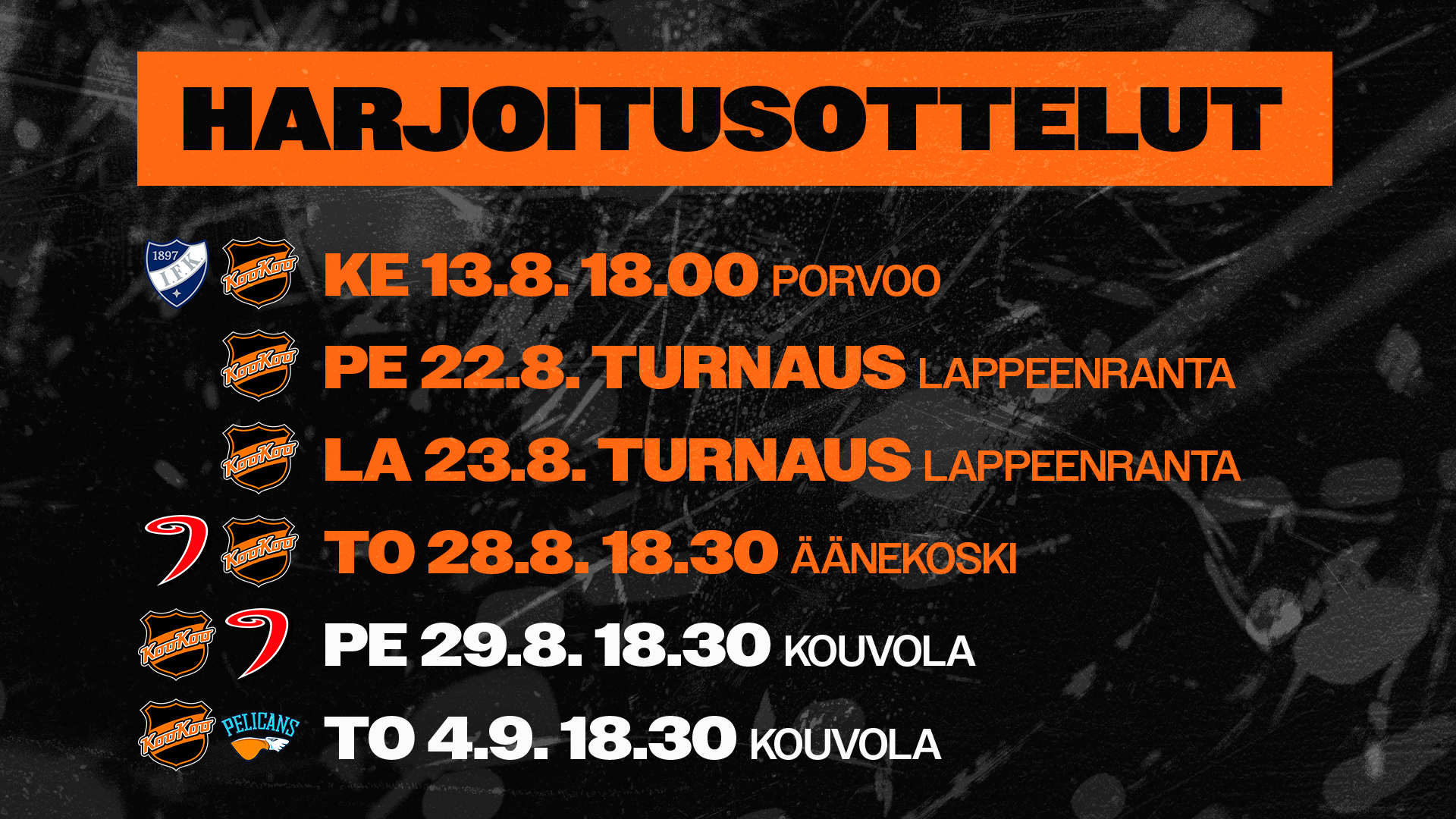 Syksyn 2025 harjoitusotteluohjelma on julkaistu. KooKoo pelaa yhteensä kuusi harjoitusottelua.