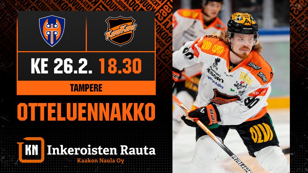 KooKoon runkosarjan loppurutistus jatkuu keskiviikkona, kun ensimmäistä kertaa tällä kaudella Tappara isännöi oranssimustia Nokia Areenalla.