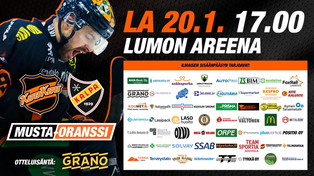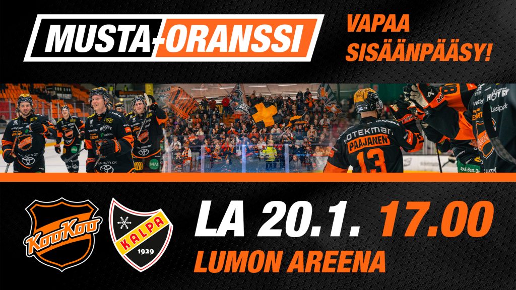 KooKoon perinteinen Mustaoranssi-hyväntekeväisyysottelu pelataan tänä vuonna lauantaina 20. tammikuuta. Otteluun on vapaa pääsy!