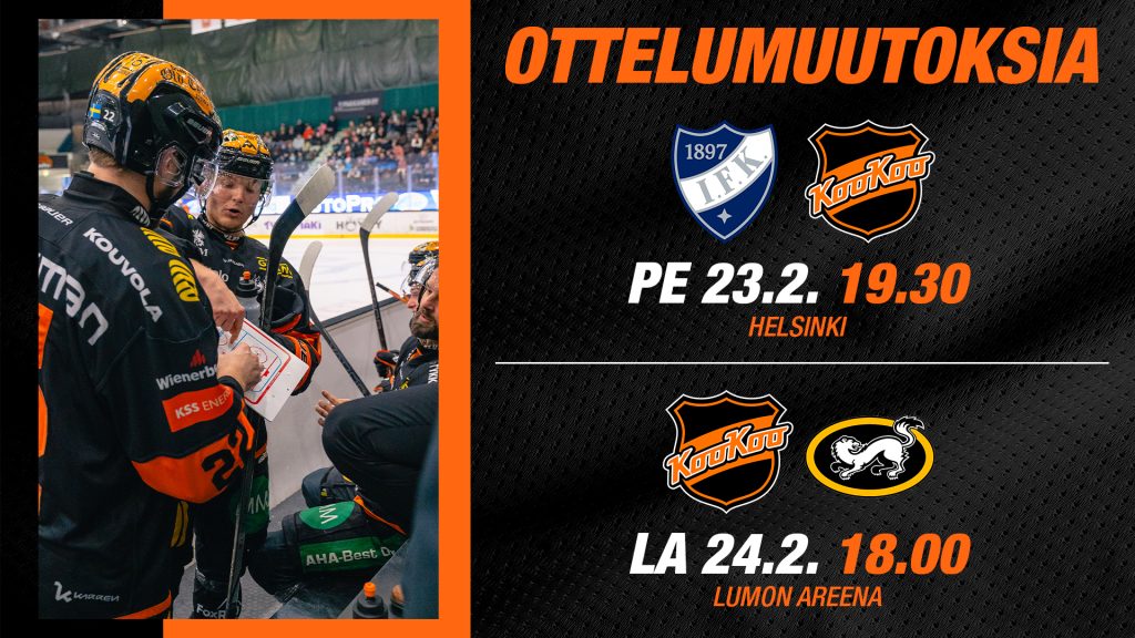 KooKoon kahden helmikuussa pelattavan ottelun alkamisajat muuttuvat.