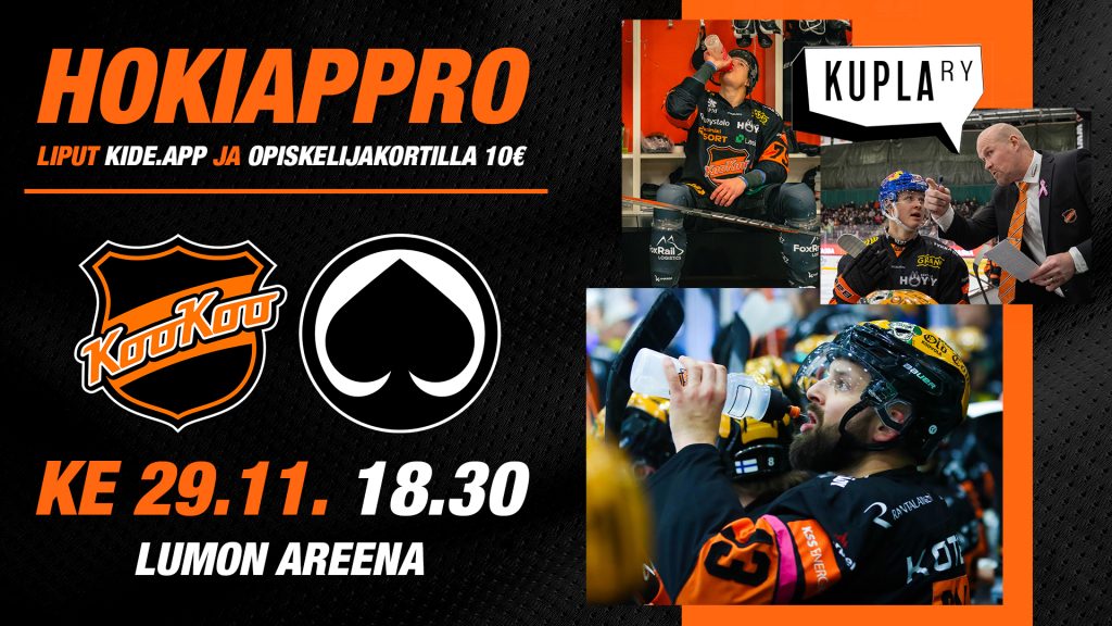 Keskiviikkona 29. marraskuuta vietetään taas opiskelijapeliä Lumon Areenalla. Hokiappro-tapahtuman liput myy Kide.app!