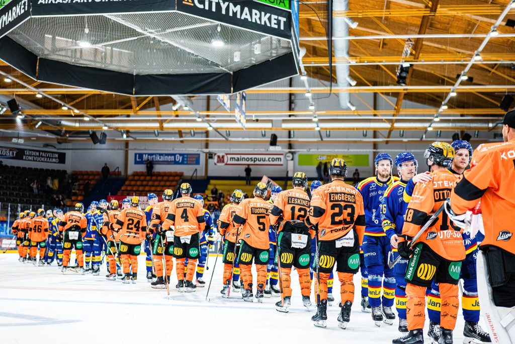 KooKoo haki kauden avausvoiton kaksijakoisen suorituksen jälkeen, loppulukemiksi kirjattiin 3–4 JA (0–2, 0–1, 3–0, 0–1).