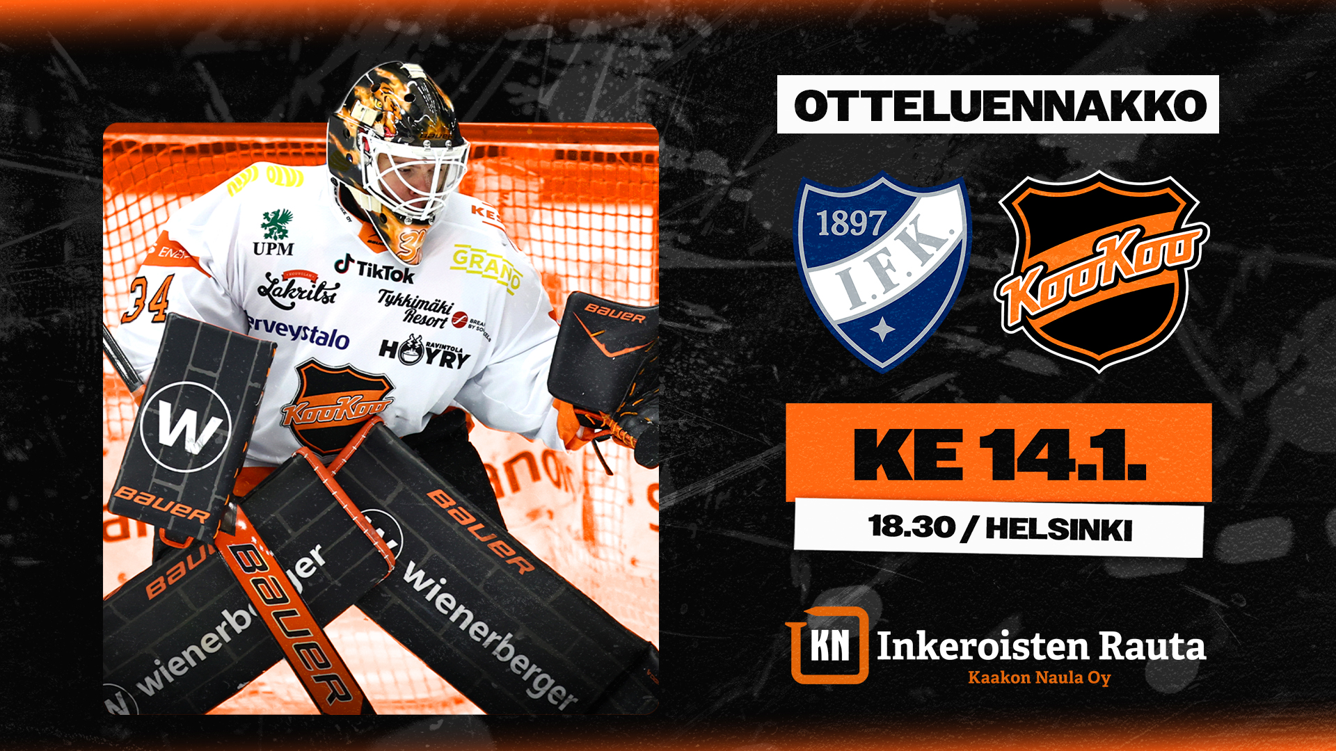 KooKoo jatkaa Liiga-otteluitaan keskiviikkona 14.1., kun vastaan asettuu HIFK Helsingissä.